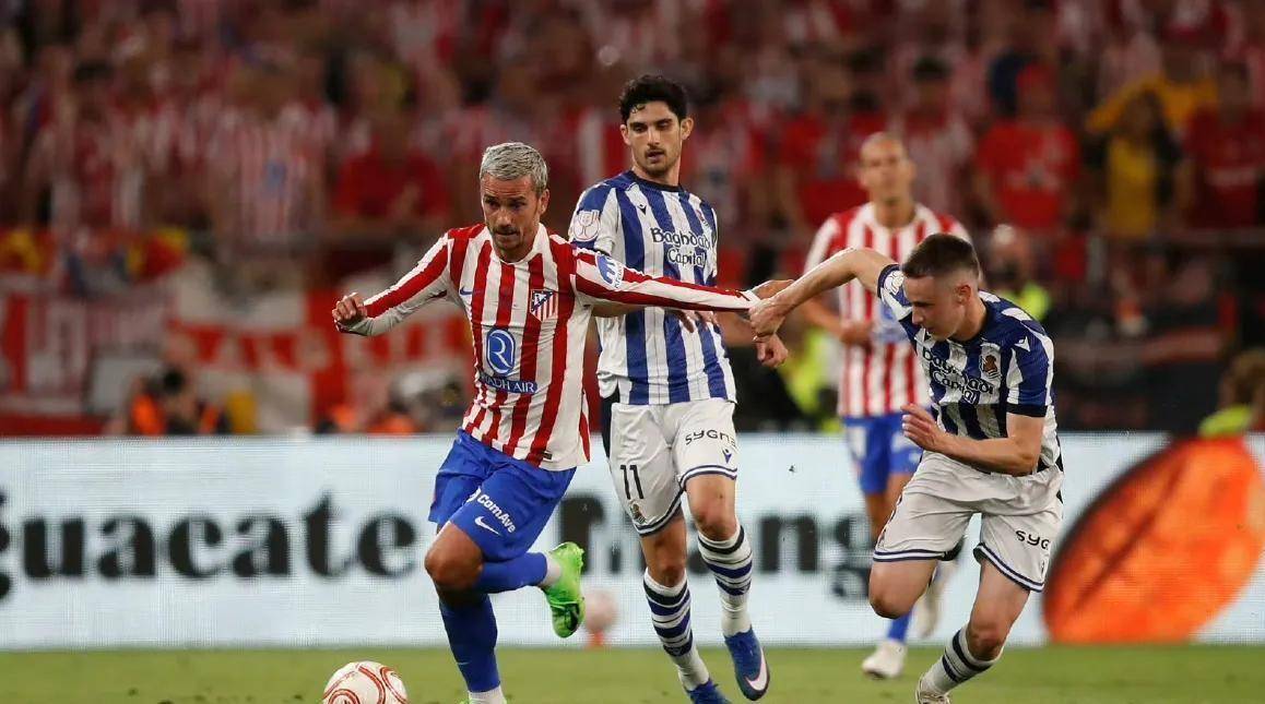 让我们把时间拨回到2026年4月19日凌晨3点,西班牙国王杯决赛在中立场地塞维利亚打响,对阵双方是马德里竞技和皇家社会。 比赛的进程充满了戏剧性和马竞式的“自毁”色彩。 开场仅仅14秒,皇家社会就给了马竞一记闷棍。 格德斯在左路送出传中,巴雷内切亚头球顶入远角,马竞0-1落后。 这个闪电失球几乎打乱了马竞所有的赛前部署。 好在第19分钟,马竞做出了回应,格列兹曼左路横敲,卢克曼低射远角得手,将比分扳为1-1。 然而,就在上半场补时阶段,马竞再次犯错。 门将穆索出击撞倒了皇家社会前锋格德斯,主裁判毫不犹豫地指向了点球点。 奥亚萨瓦尔主罚命中,马竞带着1-2的比分进入中场休息。 这个点球,在赛后成为了西蒙尼反复提及的痛处。